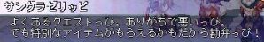 色々と言ってくれるやんちゃゼリッピに噴き出しました。 あと仲間なのにゼリッピ狩っていいのかって?ゲームだからいいんだ、 みたいなことも言ってたような。 ↑ はやばやと手に入れたプレイヤーさんがつけているのを見つけて じーっと5分くらいナルビクのWPのとこで貼り付いて見てました。 左右にぴよぴよ、お尻振ってぴよぴよ、 くるくる回って最後にプレイヤーさんに向かってびしっと決めポーズ。 可愛い!! 一番難しいというホットゼリッピ4匹のスクロールを手に入れるべく 紅玉3に走っていきましたが、知る限りでは過去最高の混み具合な上に なんでもありのカオス状態。 1時間ほど一人で走り回ってましたが、収穫ゼロ。 これはとんでもない時間にでもINしない限り、一人だと狩れないかも;; 4人PT組んでみんなで探し回って発見しだい確保。 あとは担当の人が来るまで取られないようにぺちぺち叩いとくというのが良さげです。 ……無理? ホットちゃんは無理そうだったので、普通ぴよを44匹倒して雷スクロげっと。 ナルビクの復活ポイントに座っていたら運よくPTに拾ってもらえました。 何も出来ないまま、他の3名の方がぱぱっと始末してくださり箱もげっと。 中身は四川流なんとかっていう料理でした。 しょぼくても文句言わないでねー的な事をサングラスぴよから言われてましたが もしホットちゃんを頑張って狩って、貰えるアイテムがこれだったら怒るんじゃないか…その人。 ルシはいじけて、ピヨじゃなくてサソリ苛めてゼラチン集めてます。 ウルリックさんに会いに行ったら、思い切りエルピダさんのことでのろけられました。 ますますベリックさんが気の毒になって来ました。 キャンディーを作るのにゼラチン。 マシュマロ作るのにはゼラチン使いますけど…… ウルリックさんがちゃんとキャンディー作れるのか不安です。 粉チョコ溶かして固めたエルピダさんよりハイレベルなことをしようとしている。 ……だいじょぶなのかな。 |