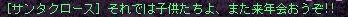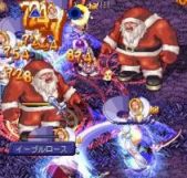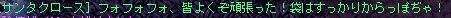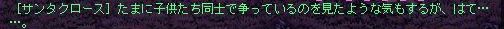 パソが熱暴走で止まるのを防ごうと時間ギリギリにINしたら、 速度異常でぼとぼと落とされる始末。 INした先のカーディフのWPで、ぼとり。 クラマスさんにPTに入れてもらった後、DOP3前にテレポで飛ばしてもらったら 更にぶちり。 うぉー何故だぁぁ;;と嘆きつつ途中からの参加となったので なんでDOPの森にイーブルロースと狂戦士トナカイが溢れていたのか その経緯は分からずじまいでしたが…… 人相の悪いサンタさんがいっぱいv おりゃあああ! やたらと筋肉質なトナカイに遭遇。 だりゃーーー! 溢れすぎです。 もう何がなんだか; 戦っている途中で2度ほどGMさんがそばを走り去られていきました。 (しかしやたらと移動速度の速いテチさんでした……さすがGMさん。) 無事に見ることができた記念にssを撮らせてもらおうと追っかけたら、 去られたあとには、サンタさんだのトナカイだのが大量に沸いてました;; 結局、見失ってssは撮れず仕舞い。残念。 GMさんが召喚される敵はどちらも物理攻撃なので 彼らからの攻撃は当たってもちょっとやそっとでは死なないのですが、 敵を狙った他のプレイヤーさんの術のとばっちりを食らってルシも南無南無。 DOP前に飛ばしてもらえるバインドをテチさんに作ってもらっといて良かったです。 夢中で狩ってるとメッセージが流れてきました。 お、サンタさん。 ――――気のせいです。 流れ弾を避けられなかっただけです;; ということで、クリスマスイベントは終了となりました。 クラマスさんがPTのレア分配を公平にしてくださっていたのもあって、 トナカイの角2本と、クリスマスプレゼント1個と こんなのがもらえました。 可愛い……v 自分の回線の弱さにまともに参加できるか心配していましたが ちゃんと行けてよかったです。 いいプレゼントももらえましたし、敵が溢れまくってるのを叩くのも楽しかったです。 サブのボリスには、砂漠で狩ってるときに降ってきた115大剣があるので そっちがクリスマスプレゼントと言う事で。 あと40ほどレベル足りませんけど、先の楽しみが出来ました^^