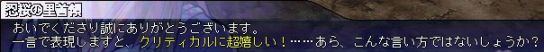 3人目にいるジョシュ君を動かしてました。 ボリスが使っていた緑風船をまわせたので、ゼリキンも行けるんじゃないかと…… ルシを連れてった時に、手加減武器はコラだったので ジョシュ君にはちゃんとレベル28ワンドを持って行かせたのですが 手加減なんぞ要らなかった。 むしろ手加減してください、普通ヒヨコが赤いです。 つつかれたら300のダメージがー アイスゼリなんて、パネルを踏ませた後もずっと追っかけてきてたし。 ……ランジエさんを連れて来なくて良かったです。これは無理だ;; 危惧していたCP1のクジラに飲み込まれること無く、 ジョシュ君はエルティボに行けました。 あれはしんどいかったので助かりました;; 音パズル説明の助手に、さらりとアイスゼリを召喚して使役。 その内もっと強いモンスターを呼ぶようになるんじゃなかろうな……?; リアルタイムでジョシュ君を育ててた人が知り合いにいなかったので 噂程度にしかきいていませんでしたが、手ごわい足止めを食らいました。 相手と同じものを出すじゃんけんゲーム。 勝つのも負けるのも確率で言うと同じはずなのに、あいこにしろと言われると 余計に難易度が上がったような気持ちになります。 しかも合わせる相手が、マギカルディさん。 フリークエで何度か登場されてますけど……あの人に合わせるってか?; 15戦やって合わず試合放棄。 2回連続で合ったのが1度だけ……何てこった。 この格好に呪われた気がしてならない;; ホラ吹きオウムって一体何だいジョシュ君。